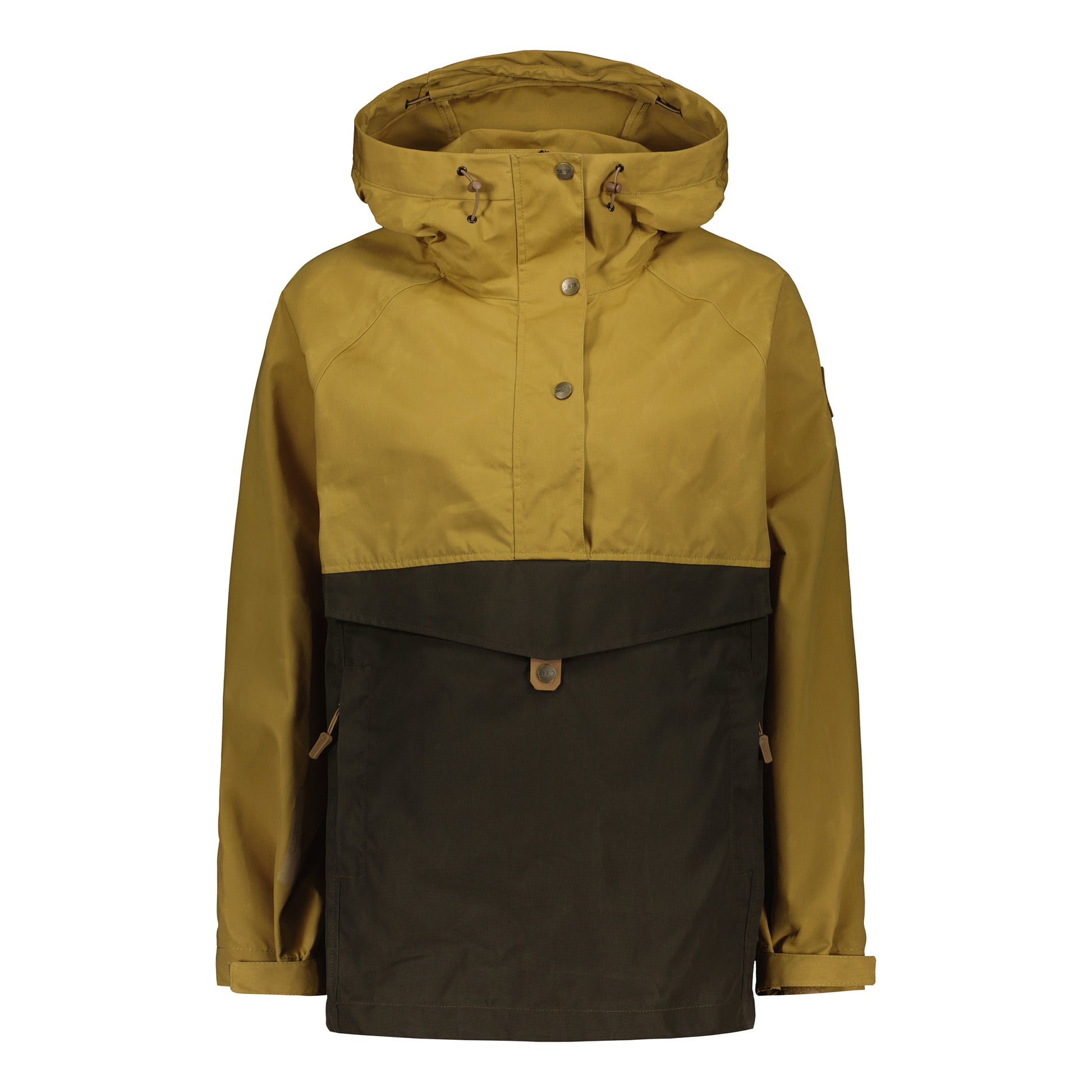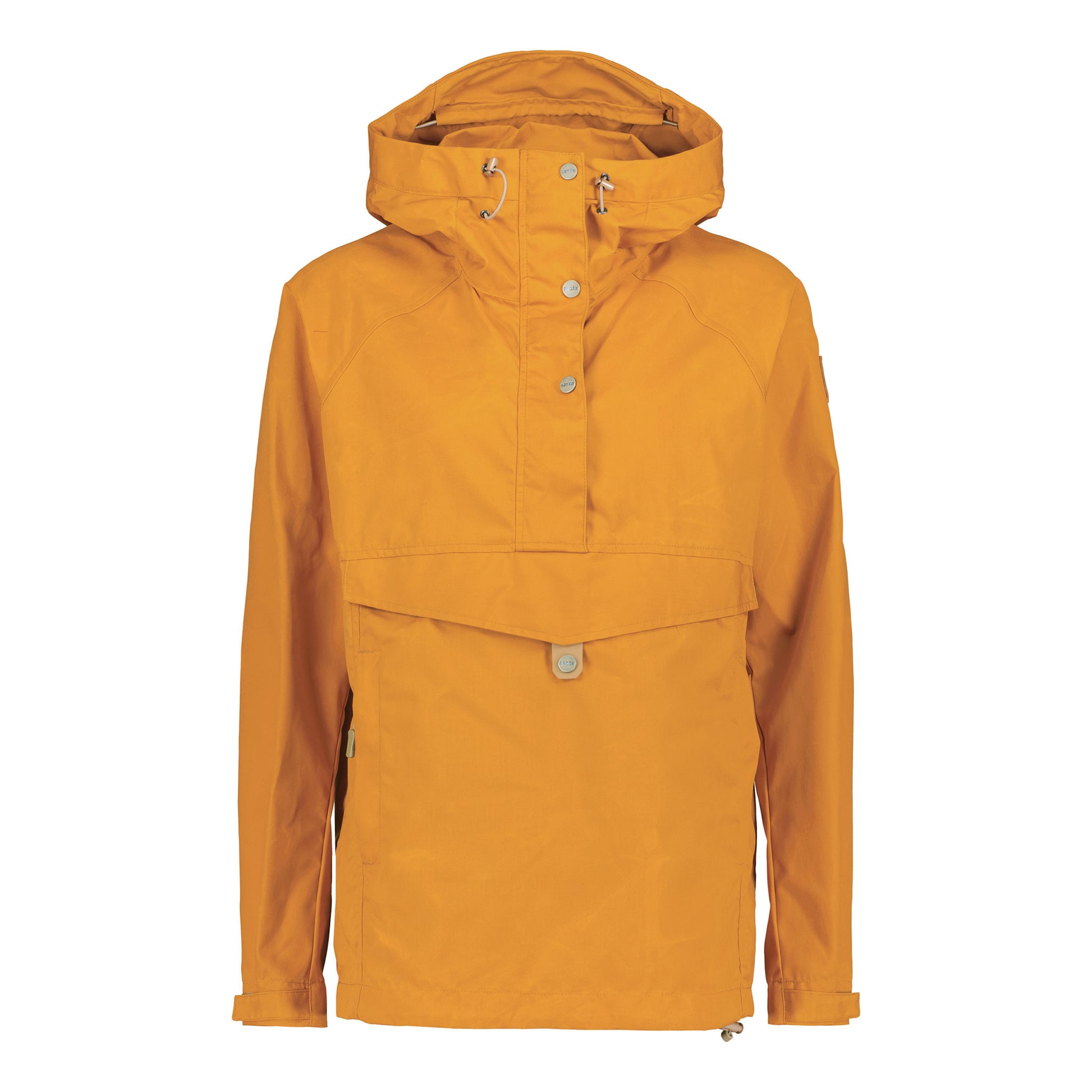 The durable and ecological 65 % recycled polyester, 35 % organic cotton fabric is treated by wax and Nikwax Cotton Proof™ finishing. The material is windproof, yet highly breathable. The anorak has an adjustable protective hood and an extra side zipper for added ventilation and ease for putting on or taking off the anorak. The anorak has 3 big pockets: a kangaroo pocket and two side pockets with zippers.